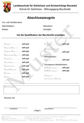 Das Zeugnis hatte andere Fächer als unsere Zeugnisse heute, es sieht auch anders aus. Die Fächer waren zum Beispiel „Lesen“, „Absehen vom Munde“, „Mündlicher Ausdruck“ oder „Handarbeit“.